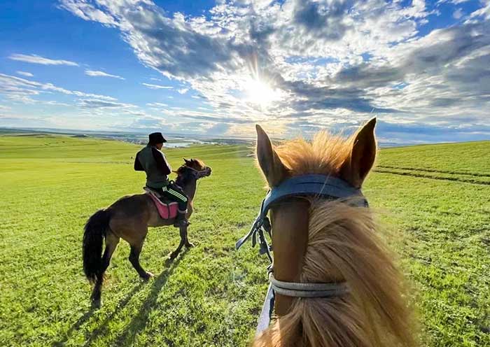 草原骑马:天气晴好时,您可以选择骑马漫游希拉穆仁草原。